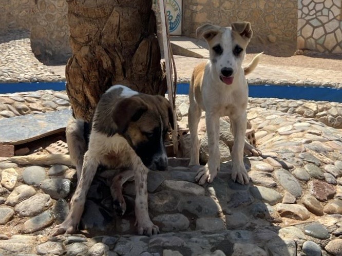 Little Gastone was born in the middle of the desert inside the Safari area, together with his other 7 siblings. Mama Braunina belonged to one of our outside packs we are taking care of twice daily with food, water and if needed medical assistance, along the desert road in the Safari area. In that particular morning we noticed the very young mother struggling with her numerous little babies in the heat and decided to take her in to our shelter to give her a hand and the time to recover from the birth for a couple of days. When the little family was ready to go back to their habitat and their pack, an emergency call reached us of a little puppy, nearly the same age, that was left by a cruel destiny without mother. The try to add it to Brauninas little family ended up with success and she accepted the orphaned puppy as her baby. More time was needed in the shelter to give also the orphaned puppy the chance to recover. At the end all puppies plus Braunina have found sponsors that made it possible and gave them the chance to stay in Paradise Dream and to start a new life, looking for their forever families.