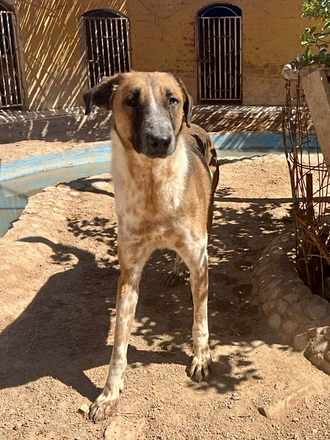 Little Gastone was born in the middle of the desert inside the Safari area, together with his other 7 siblings. Mama Braunina belonged to one of our outside packs we are taking care of twice daily with food, water and if needed medical assistance, along the desert road in the Safari area. In that particular morning we noticed the very young mother struggling with her numerous little babies in the heat and decided to take her in to our shelter to give her a hand and the time to recover from the birth for a couple of days. When the little family was ready to go back to their habitat and their pack, an emergency call reached us of a little puppy, nearly the same age, that was left by a cruel destiny without mother. The try to add it to Brauninas little family ended up with success and she accepted the orphaned puppy as her baby. More time was needed in the shelter to give also the orphaned puppy the chance to recover. At the end all puppies plus Braunina have found sponsors that made it possible and gave them the chance to stay in Paradise Dream and to start a new life, looking for their forever families.